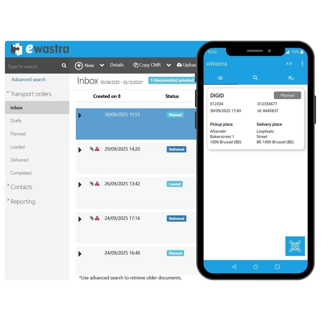 In eWastra you create your legal transport documents with just a few clicks, track the status in real-time and collect signatures on-site. Drivers work paperless via the mobile app and you immediately receive the correct data.